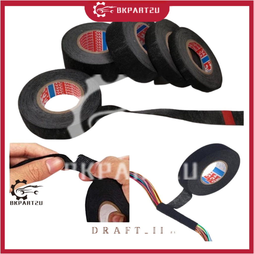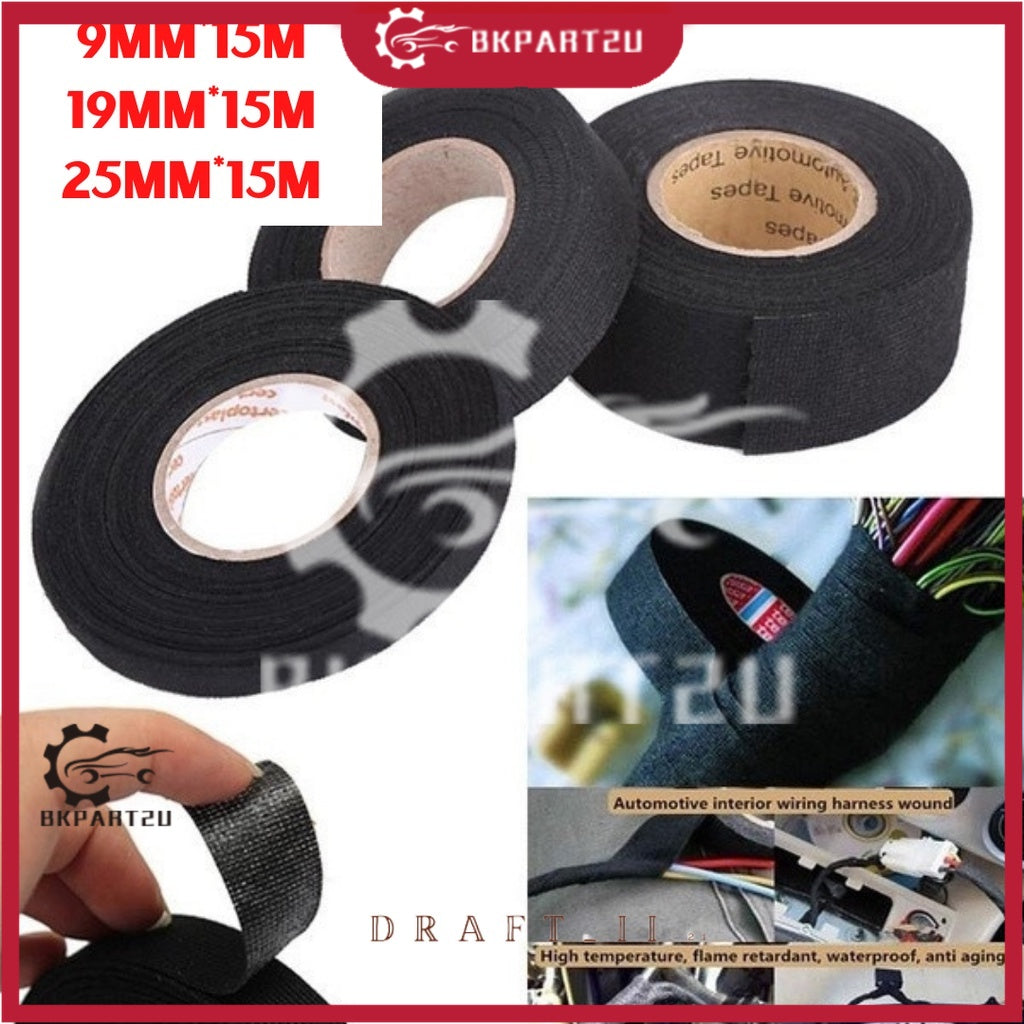 15M Adhesive Cloth Automotive Wiring Harness Tape Car Auto Heat Sound Isolation Adhesive Tape Wayar Tape 手柄烟杆防滑胶带布线交待
