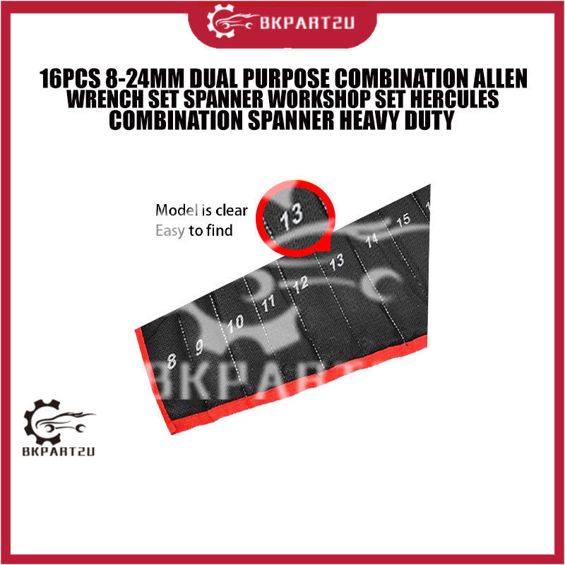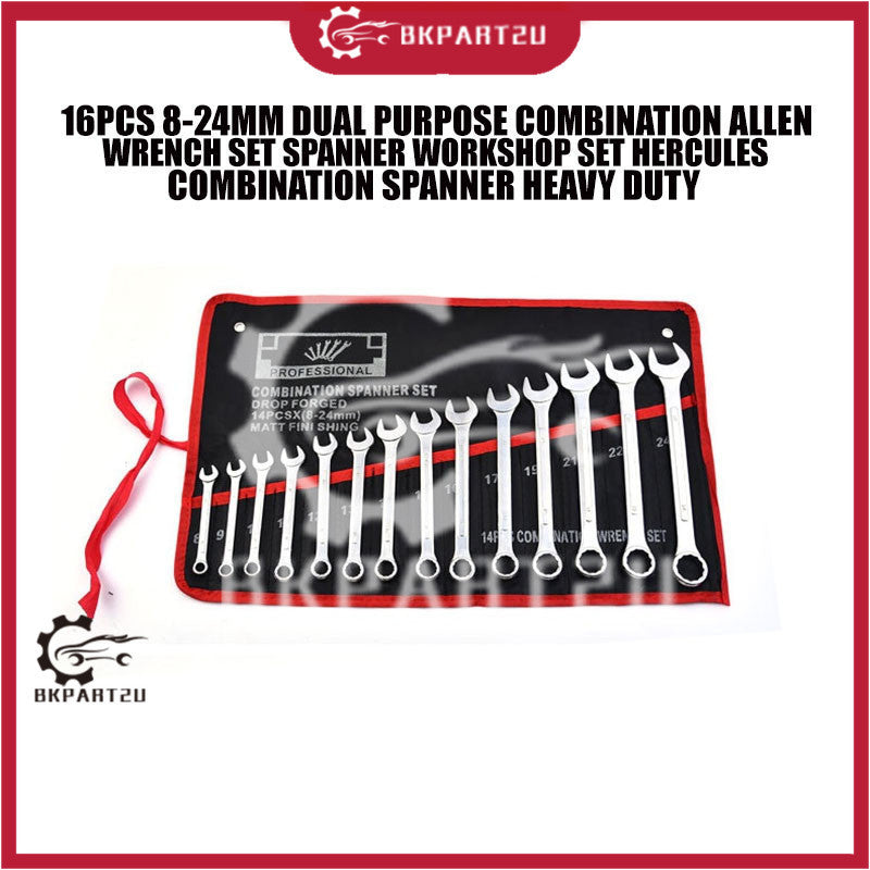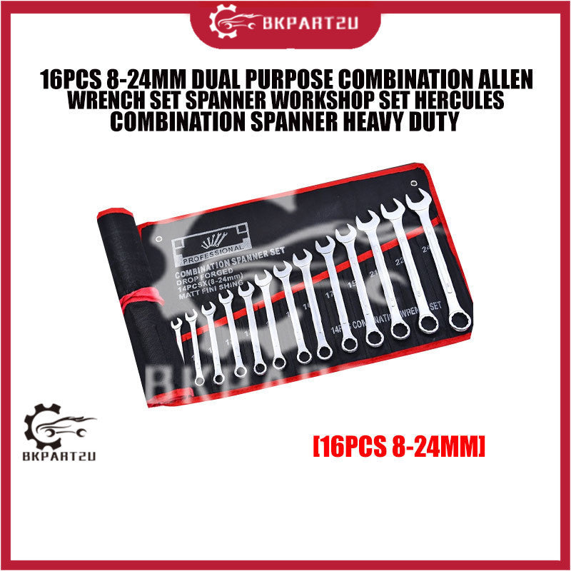 16PCS 8-24MM DUAL PURPOSE COMBINATION ALLEN WRENCH SET SPANNER WORKSHOP SET HERCULES COMBINATION SPANNER HEAVY DUTY X1