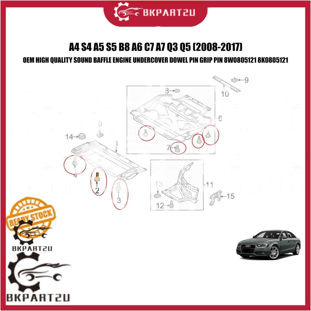 A4 S4 A5 S5 B8 A6 C7 A7 Q3 Q5 Q7 (2008-2017) SOUND BAFFLE ENGINE UNDERCOVER DOWEL PIN GRIP PIN 8W0805121 8K0805121