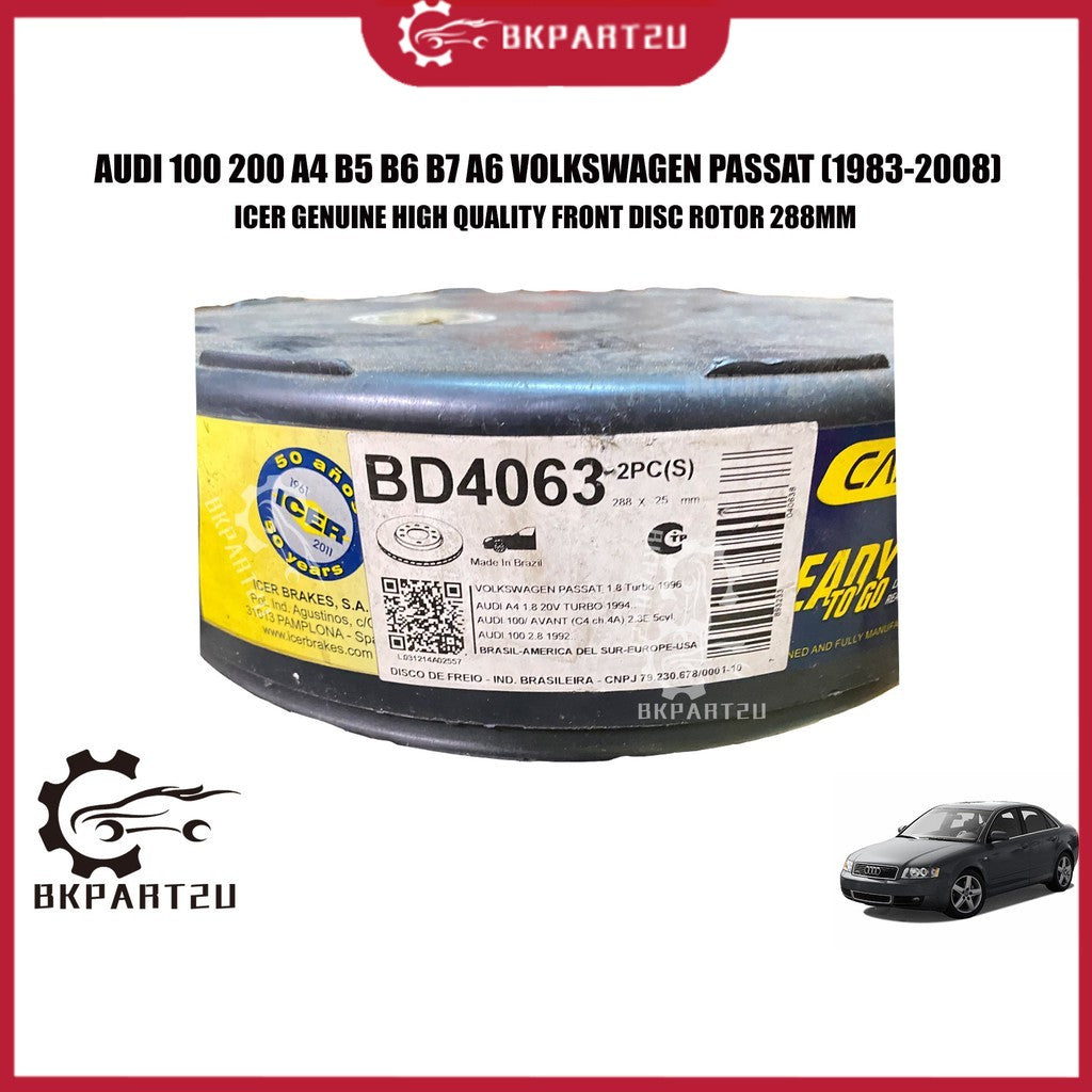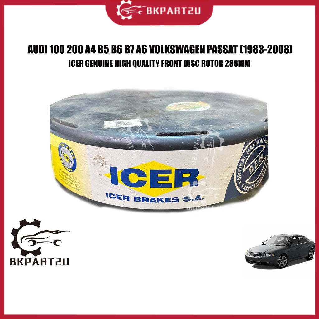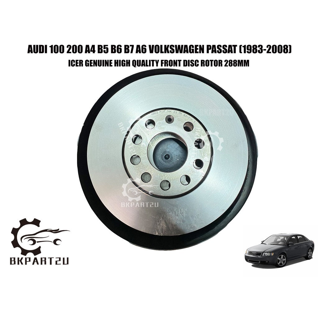 Audi 100 200 A4 B5 B6 B7 A6 Volkswagen Passat (1983-2008) Front Disc Rotor Depan 288mm Made By Icer 8E0 615 301 Q