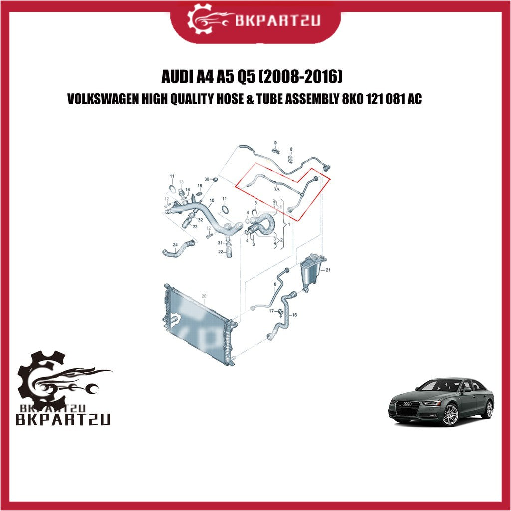 AUDI A4 A5 Q5 (2008-2016) HOSE & TUBE ASSEMBLY MADE BY VOLKSWAGEN / OEM 8K0 121 081 AC