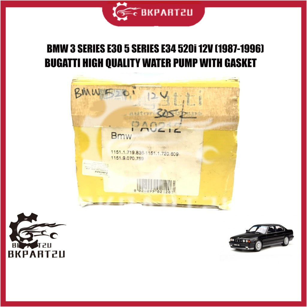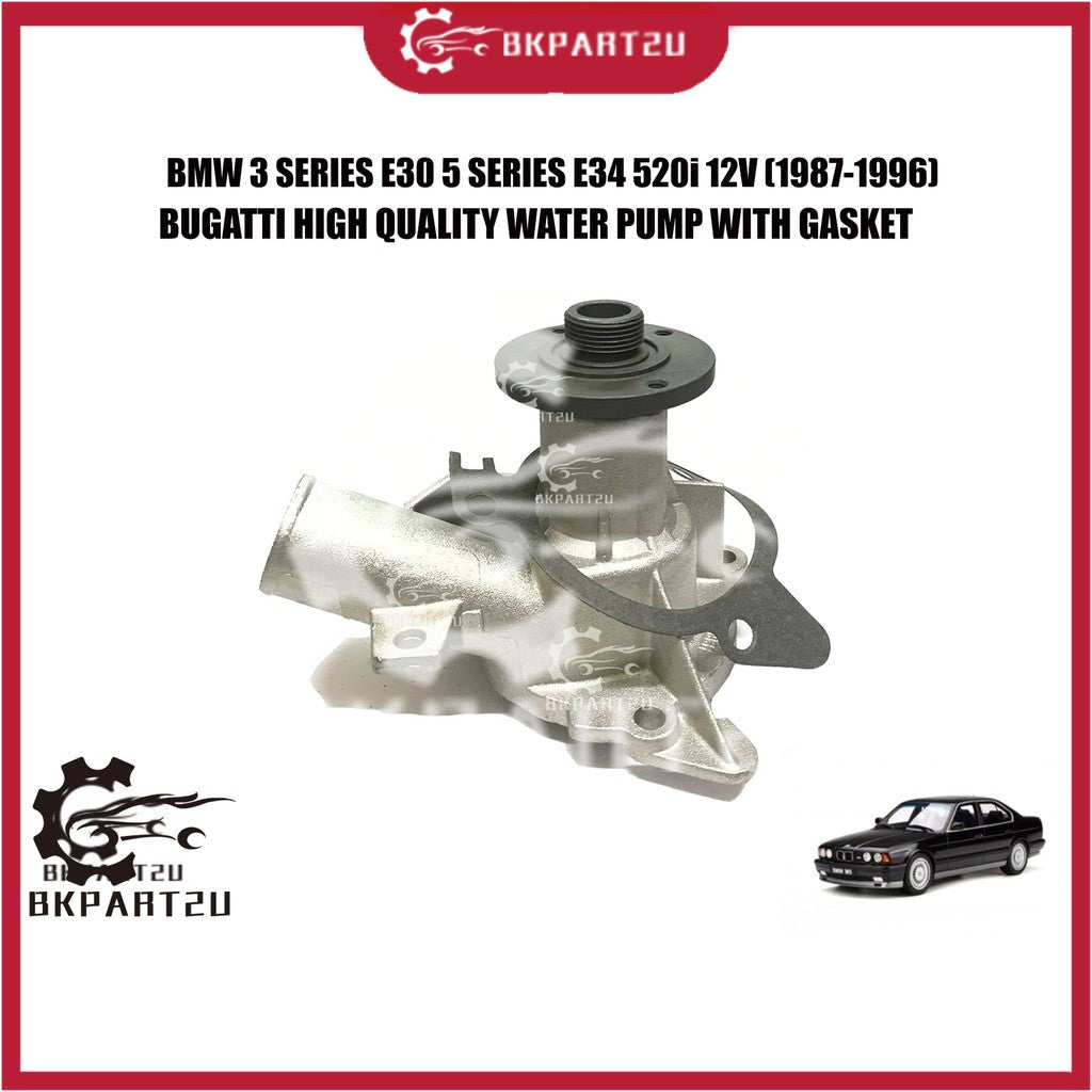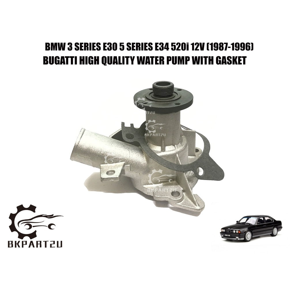 BMW 3 SERIES E30 5 SERIES E34 520i 12V M20 (1987-1996) WATER PUMP WITH GASKET MADE BY BUGATTI HIGH QUALITY 125 170 2494