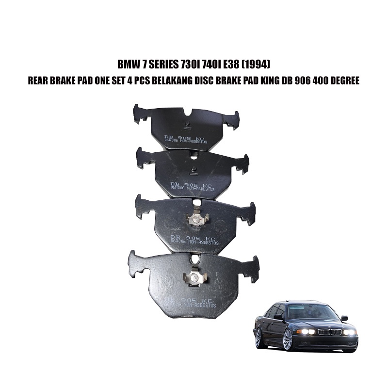 BMW 7 SERIES 730I 740I E38 (1994) REAR BRAKE PAD ONE SET 4 PCS BELAKANG DISC BRAKE PAD KING DB 906 400 DEGREE