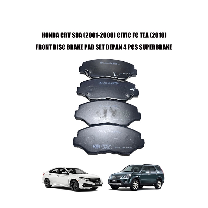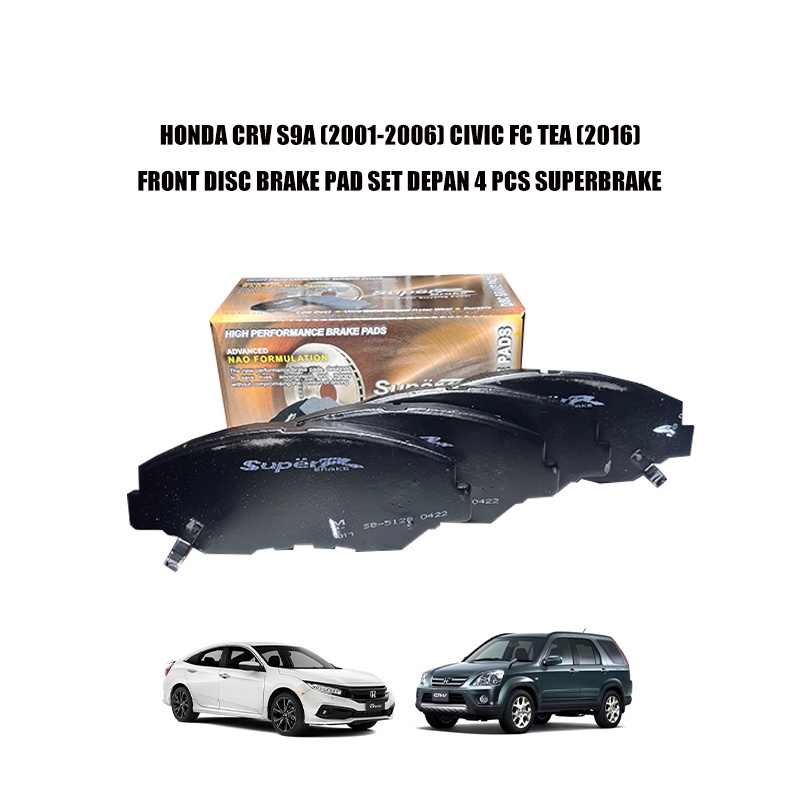 HONDA CRV S9A (2001-2006) CIVIC FC TEA (2016) FRONT DISC BRAKE PAD SET DEPAN 4 PCS SUPERBRAKE