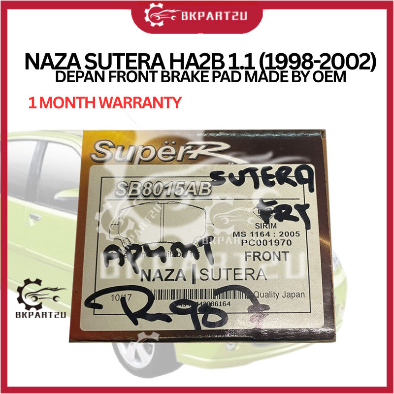 NAZA SUTERA HA2B 1.1 (1998-2002) DEPAN FRONT BRAKE PAD MADE BY OEM 1 MONTH WARRANTY