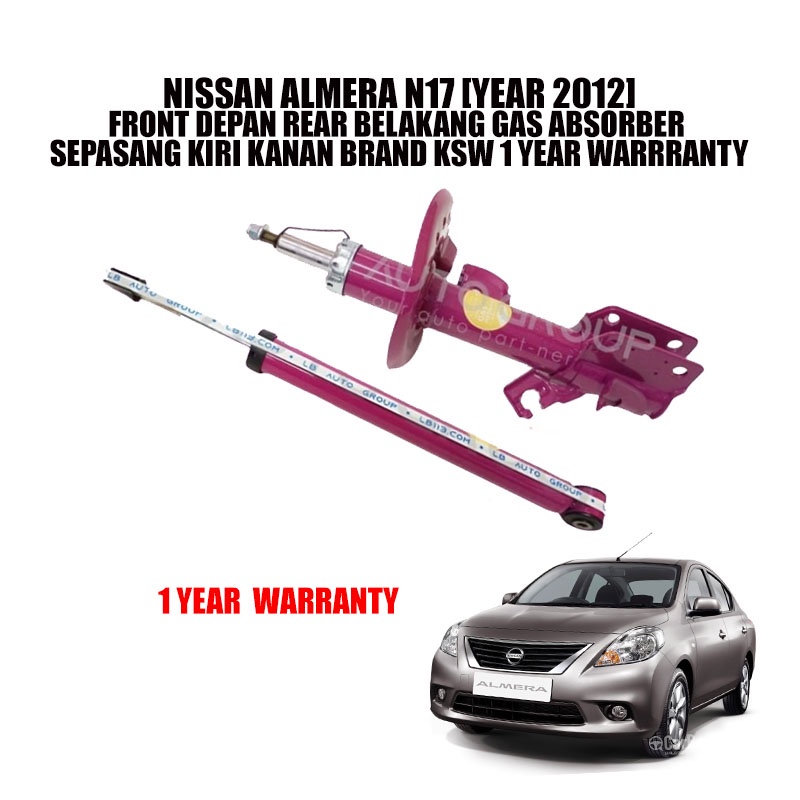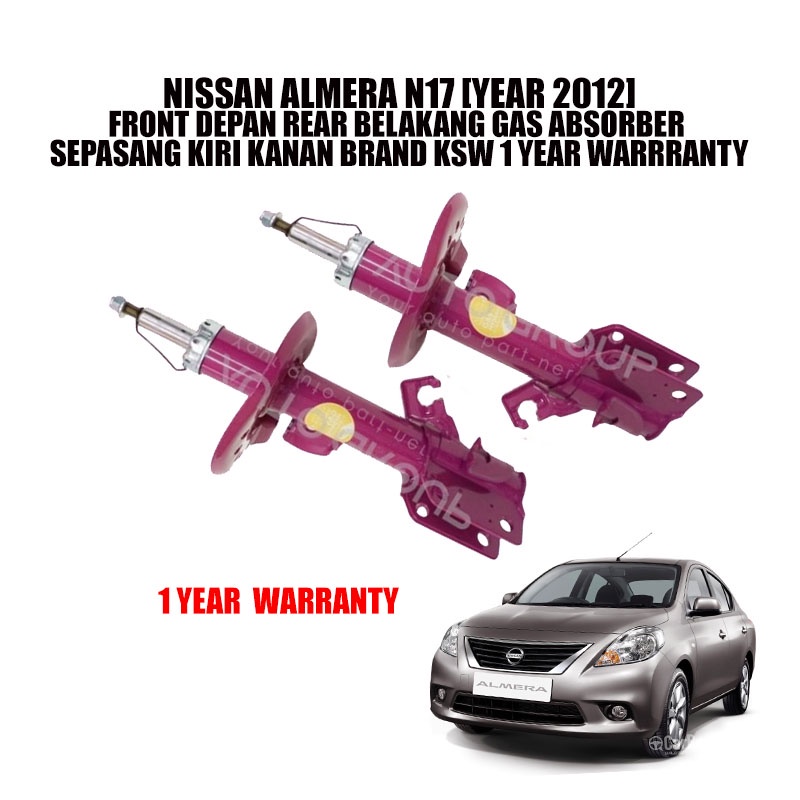NISSAN ALMERA N17 [YEAR 2012] FRONT DEPAN REAR BELAKANG GAS ABSORBER SEPASANG KIRI KANAN BRAND KSW 1 YEAR WARRRANTY