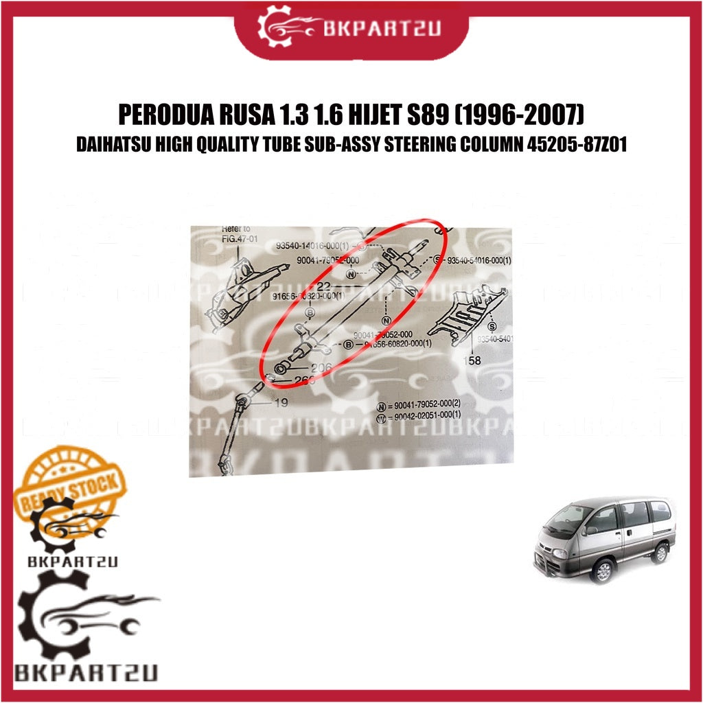 PERODUA RUSA 1.3 1.6 HIJET S89 (1996-2007) TUBE SUB-ASSY STEERING COLUMN SHAFT MADE BY DAIHATSU 45205-87Z01 OLD STOCK