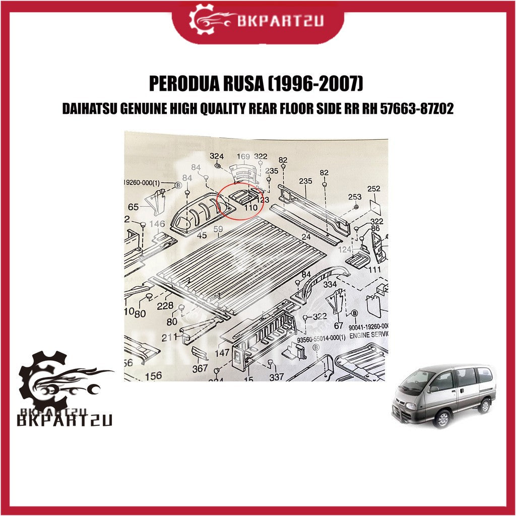 PERODUA RUSA (1996-2007) REAR BODY FLOOR SIDE PANEL RR RH PANEL BELAKANG BODY MADE BY DAIHATSU 57663-87Z02