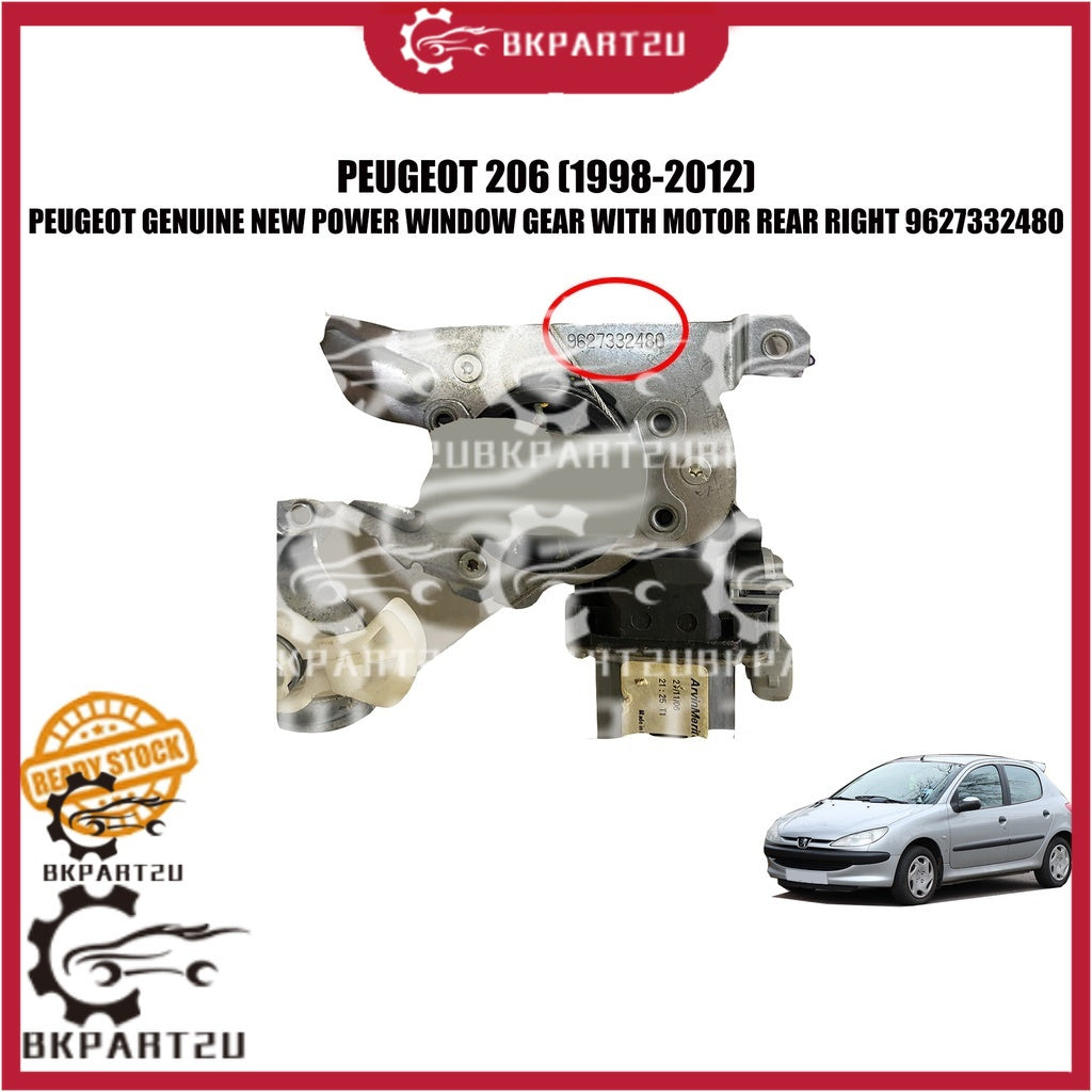 PEUGEOT 206 (1998-2012) POWER WINDOW GEAR WITH MOTOR REAR RIGHT REGULATOR GEAR 9627332480 PEUGEOT GENUINE