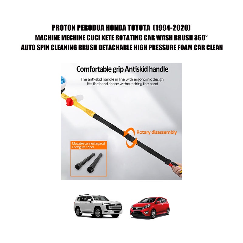 PROTON PERODUA HONDA TOYOTA (1994-2020)MACHINE CUCI KETE ROTATING CAR WASH BRUSH 360° AUTO SPIN CLEANING BRUSH