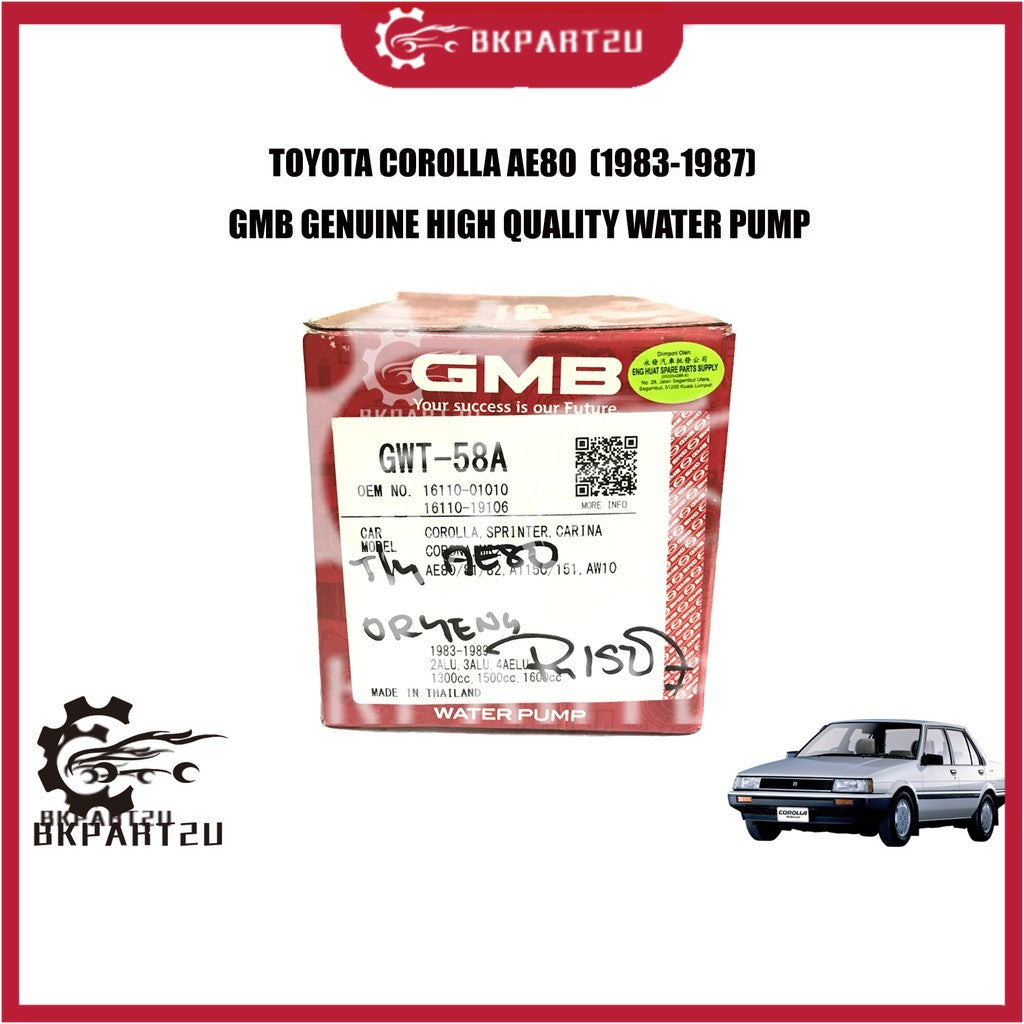 TOYOTA COROLLA AE80 CARINA(1983-1987) WATER PUMP WITH GASKET AND ORING MADE BY GMB GWT-58A 16110-01010