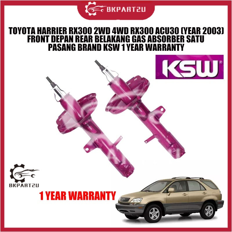 TOYOTA HARRIER RX300 2WD 4WD RX300 ACU30 (YEAR 2003) FRONT DEPAN REAR BELAKANG GAS ABSORBER SATU PASANG BRAND KSW