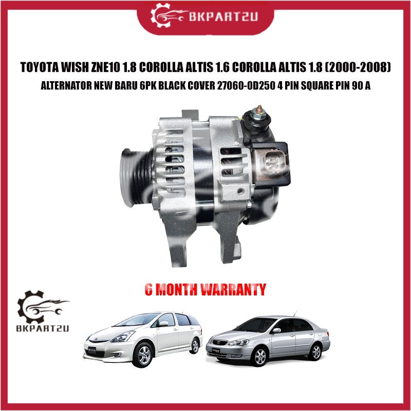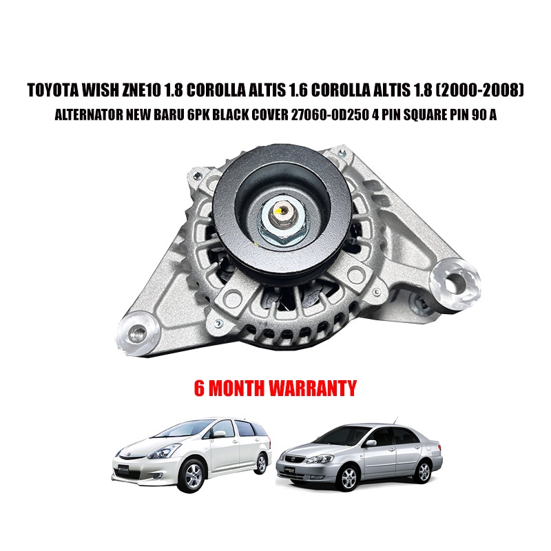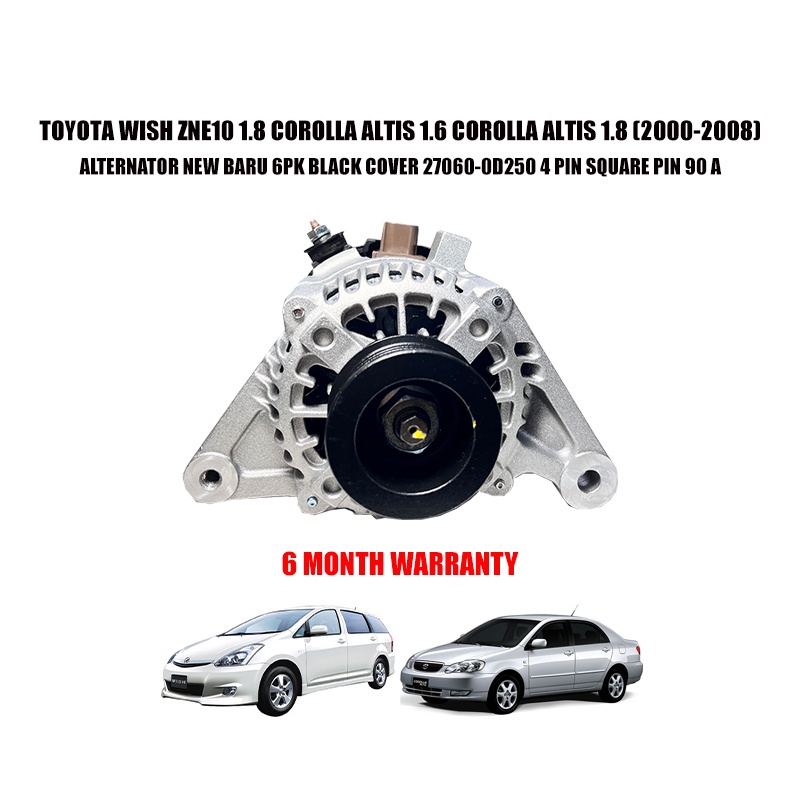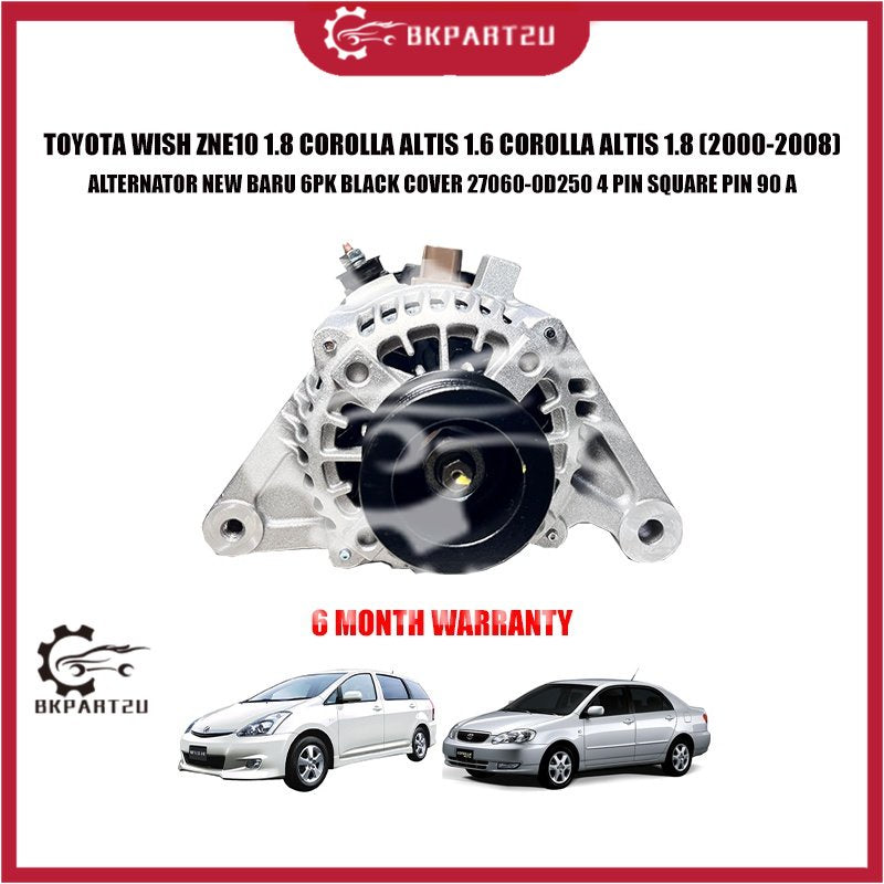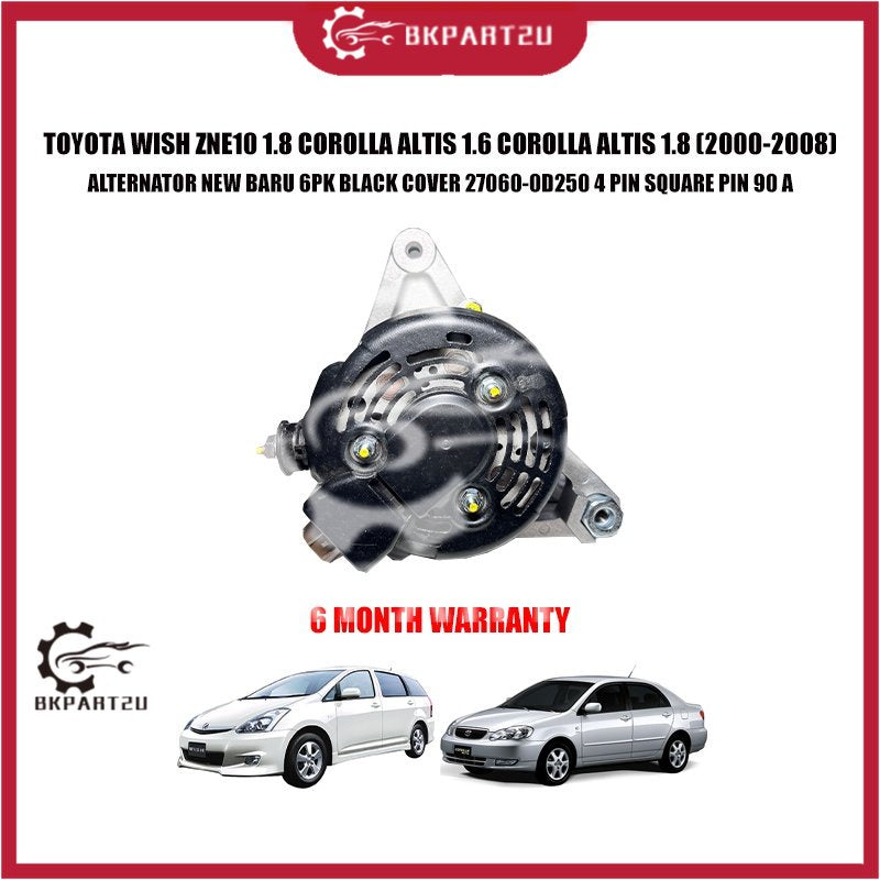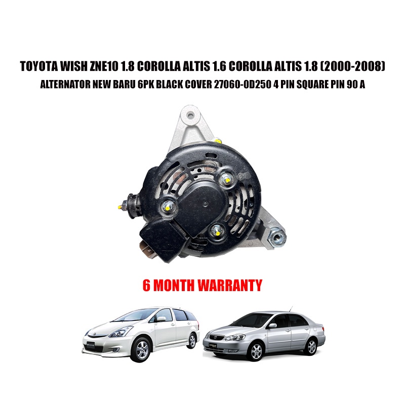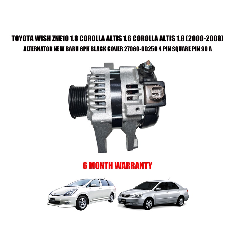 TOYOTA WISH ZNE10 1.8 COROLLA ALTIS 1.6 COROLLA ALTIS 1.8 ALTERNATOR NEW BARU 6PK BLACK COVER 27060-0D250 4 PIN SQUARE