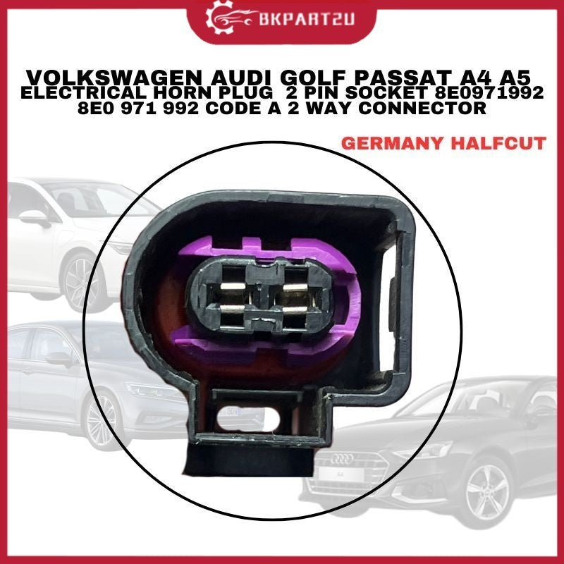 VOLKSWAGEN AUDI GOLF PASSAT A4 A5 ELECTRICAL HORN PLUG 2 PIN SOCKET 8E0971992 8E0 971 992 CODE A 2 WAY CONNECTOR