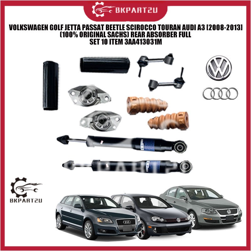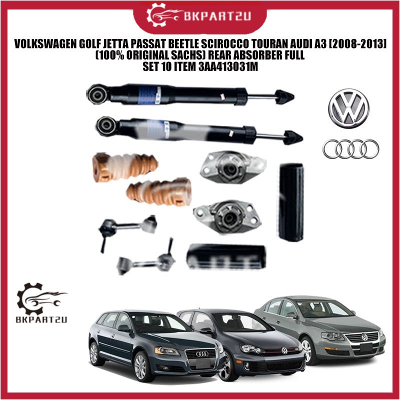 VOLKSWAGEN GOLF JETTA PASSAT BEETLE SCIROCCO TOURAN AUDI A3 (100% ORIGINAL SACHS) REAR ABSORBER FULL SET 10 ITEM 3AA4130