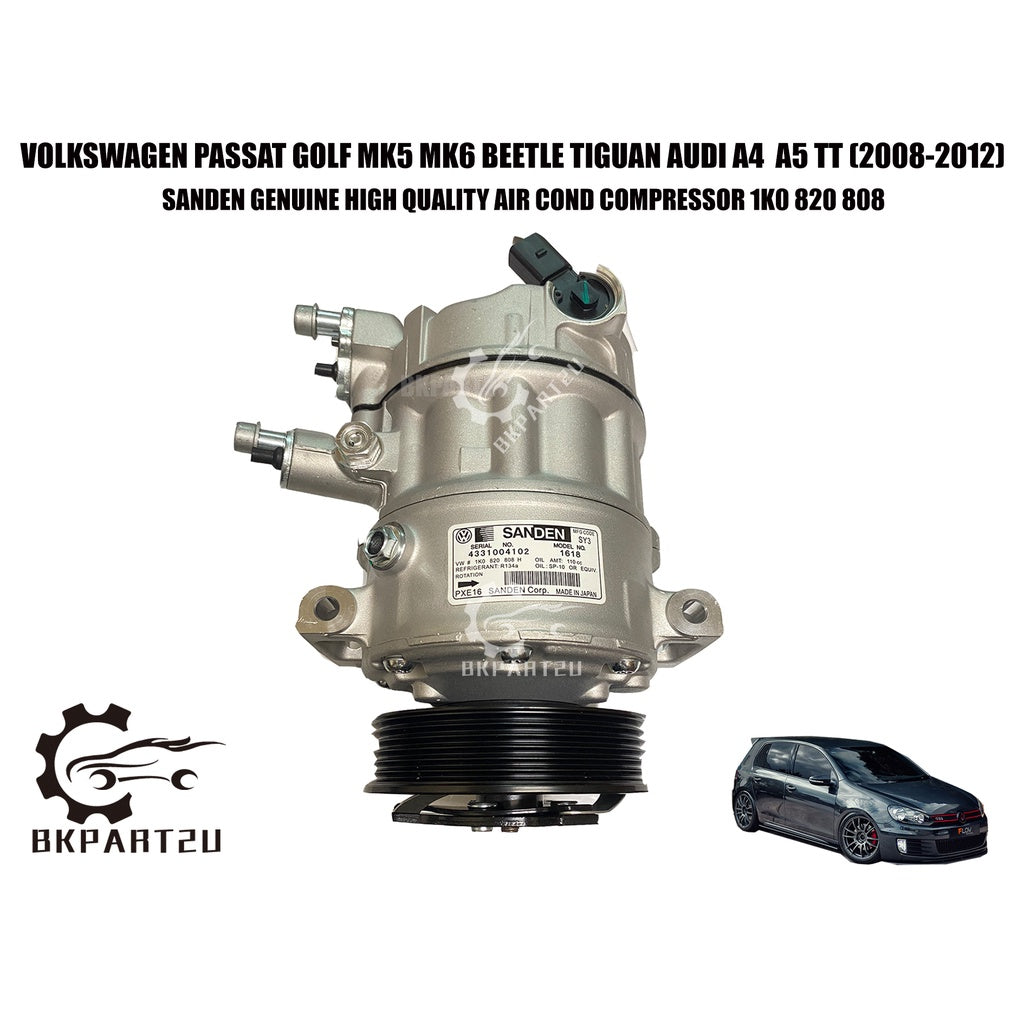 VOLKSWAGEN PASSAT GOLF MK5 MK6 BEETLE TIGUAN AUDI A4 A5 TT (2008-2012) AIR COND COMPRESSOR MADE BY SANDEN 1K0 820 808