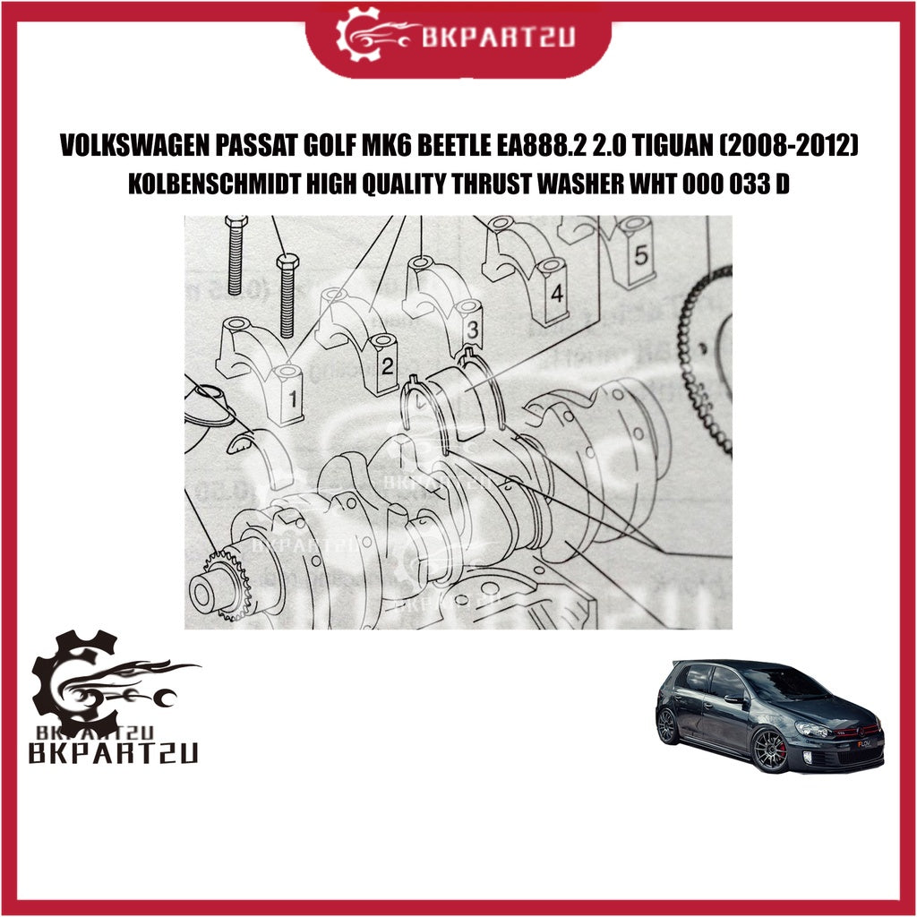 VOLKSWAGEN PASSAT GOLF MK6 BEETLE EA888.2 2.0 TIGUAN (2008-2012) THRUST WASHER MADE BY KOLBENSCHMIDT WHT 000 033 D