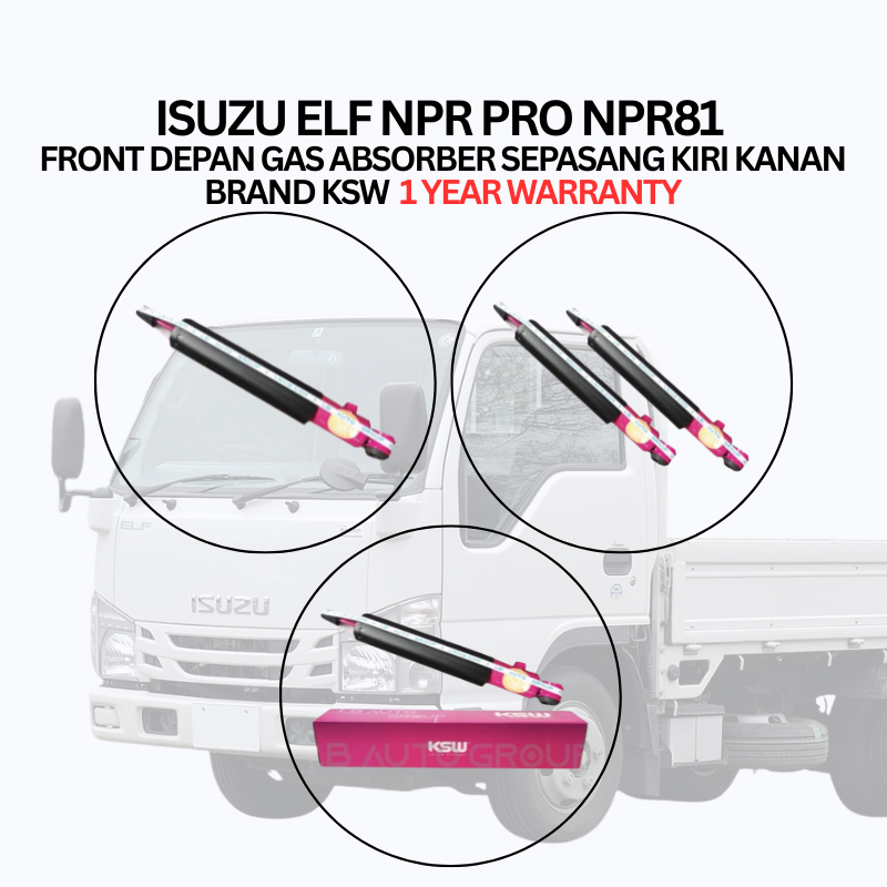 ISUZU ELF NPR PRO NPR81 FRONT DEPAN GAS ABSORBER SEPASANG KIRI KANAN BRAND KSW 1 YEAR WARRANTY