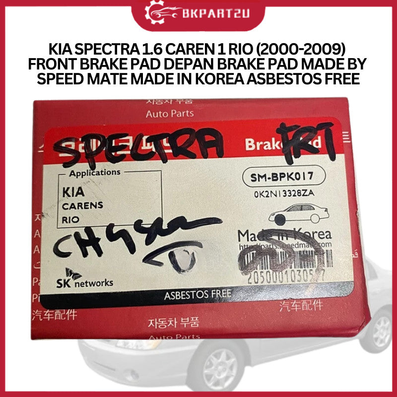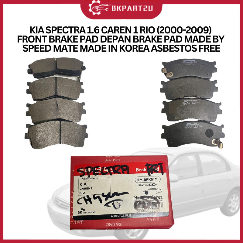 KIA SPECTRA 1.6 CAREN 1 RIO (2000-2009) FRONT BRAKE PAD DEPAN BRAKE PAD MADE BY SPEED MATE MADE IN KOREA ASBESTOS FREE