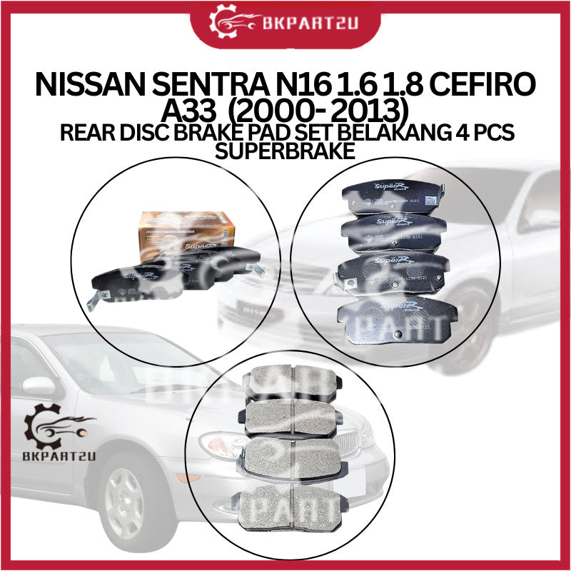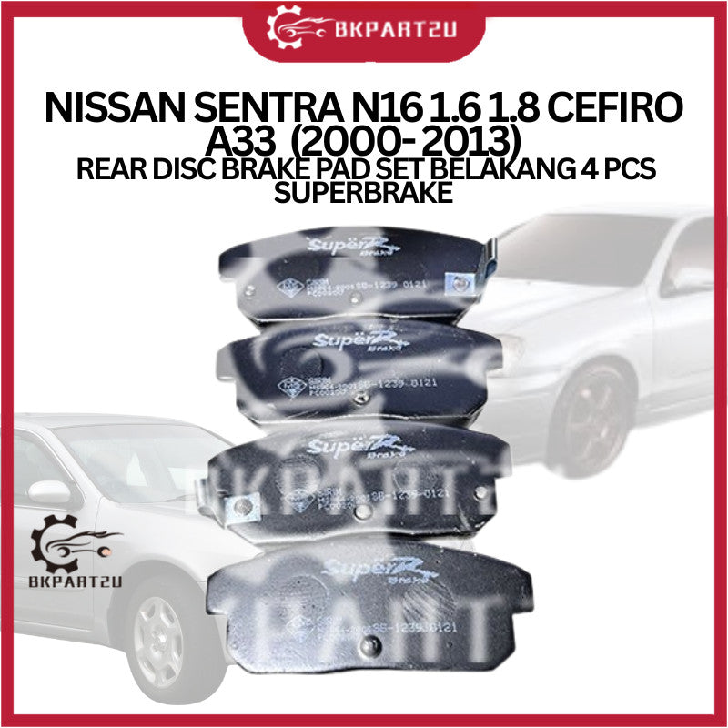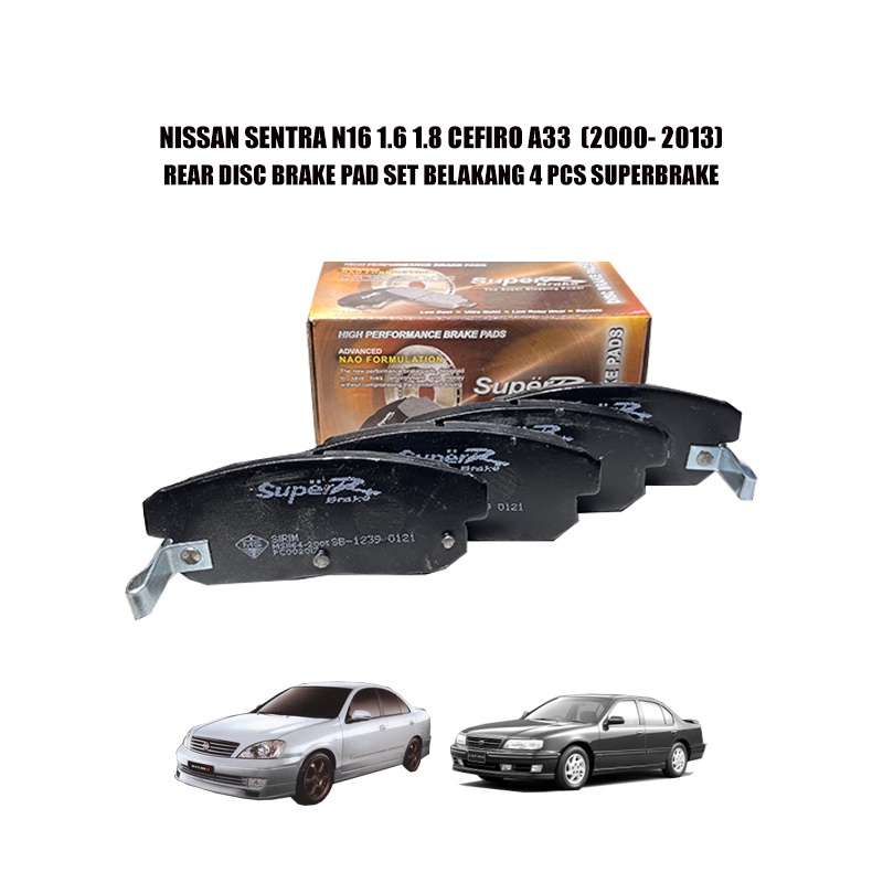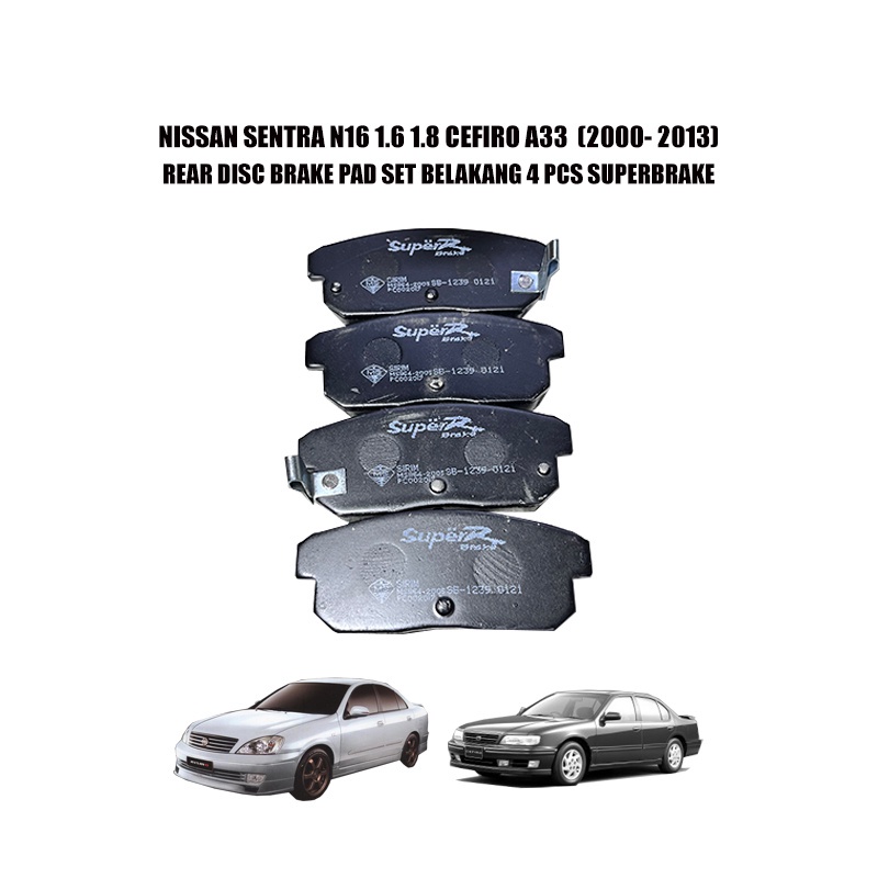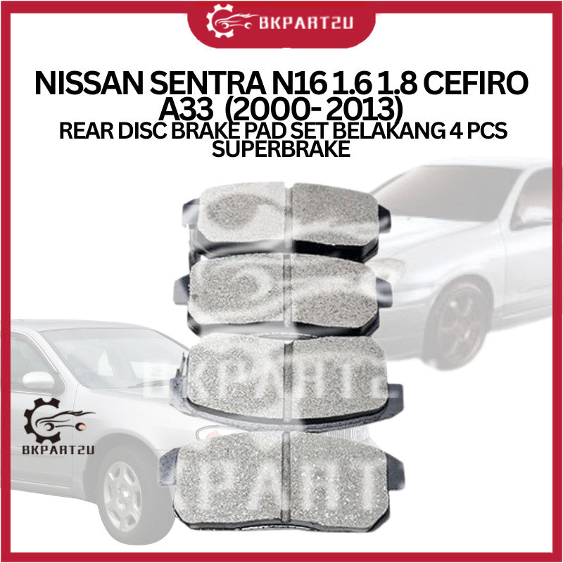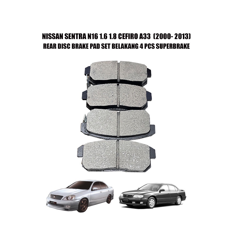 NISSAN SENTRA N16 1.6 1.8 CEFIRO A33 (2000- 2013) REAR DISC BRAKE PAD SET BELAKANG 4 PCS SUPERBRAKE