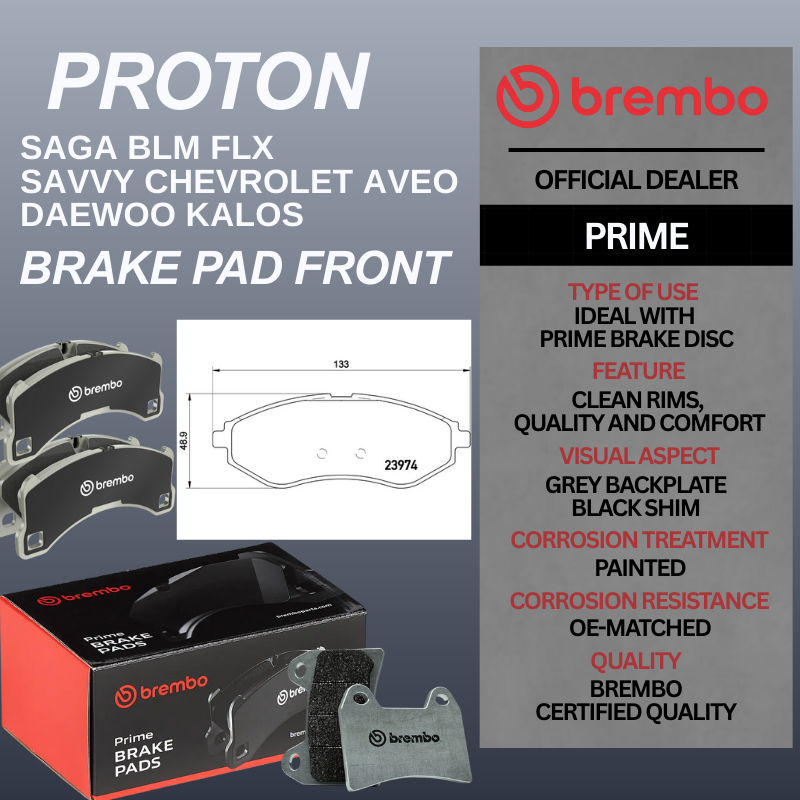 PROTON SAGA BLM FLX SAVVY CHEVROLET AVEO DAEWOO KALOS BREMBO PRIME BRAKE PAD FRONT DISC BRAKE PADS / BRAKE PAD DEPAN