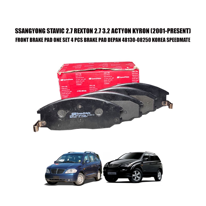 SSANGYONG STAVIC 2.7 REXTON 2.7 3.2 ACTYON KYRON FRONT BRAKE PAD ONE SET 4 PCS BRAKE PAD DEPAN 48130-08250 KOREA